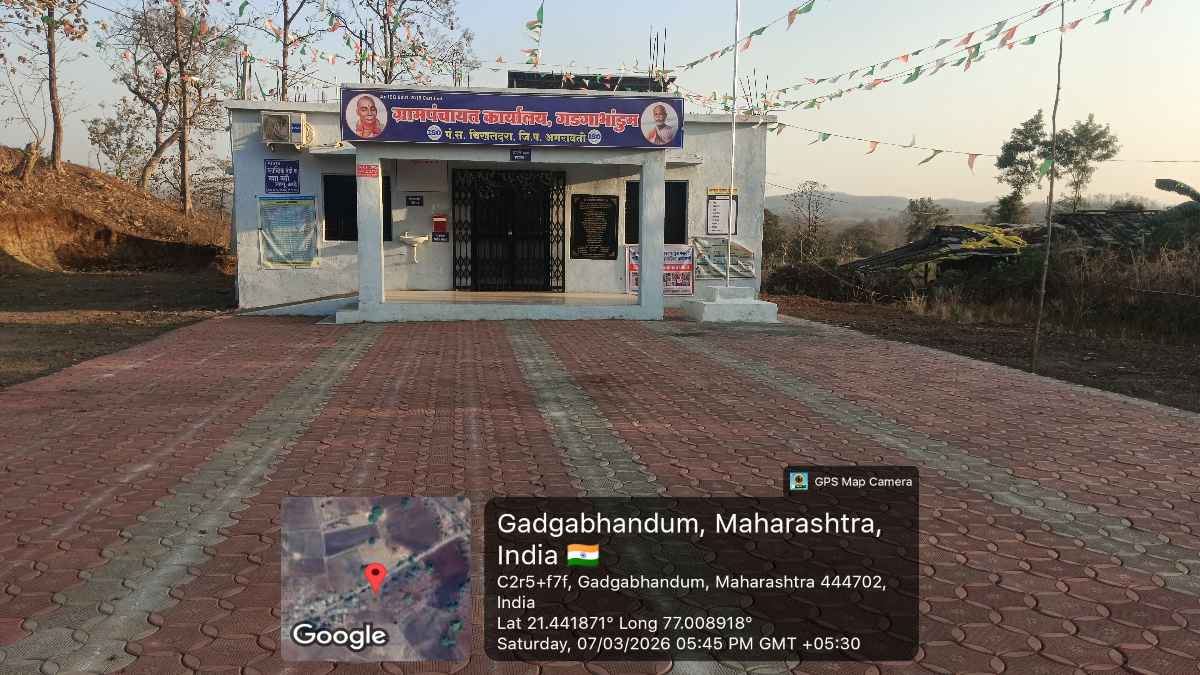 ग्रामपंचायत कार्यालय गडगाभांडुमपंचायत समिती : चिखलदरा , जिल्हा : अमरावतीग्रामपंचायत कार्यालय गडगाभांडुम स्वता150 --