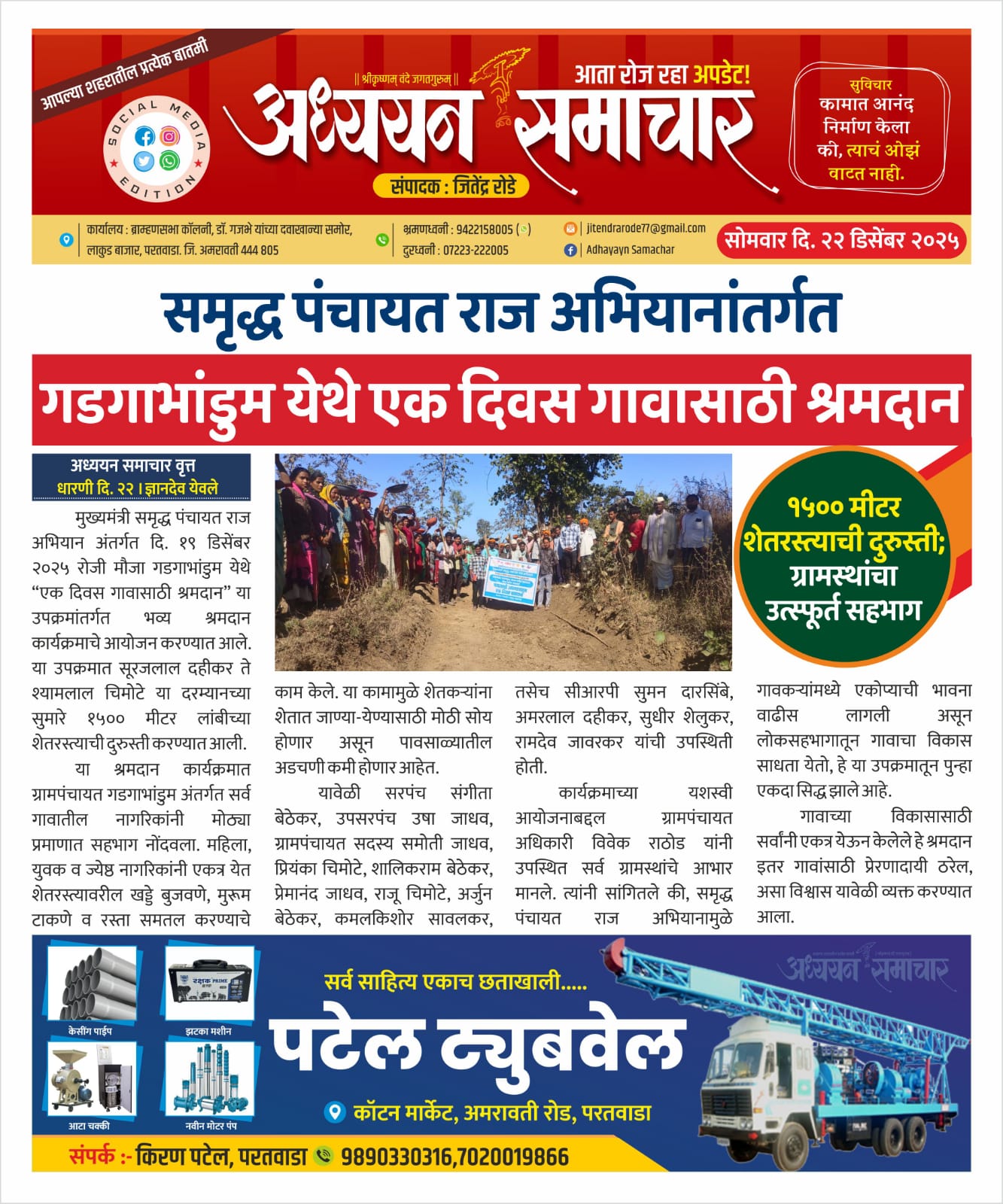 - ग्रामसभा व डिजिटल तंत्रज्ञानाद्वारे पारदर्शक व उत्तरदायी प्रशासन राबवणे.