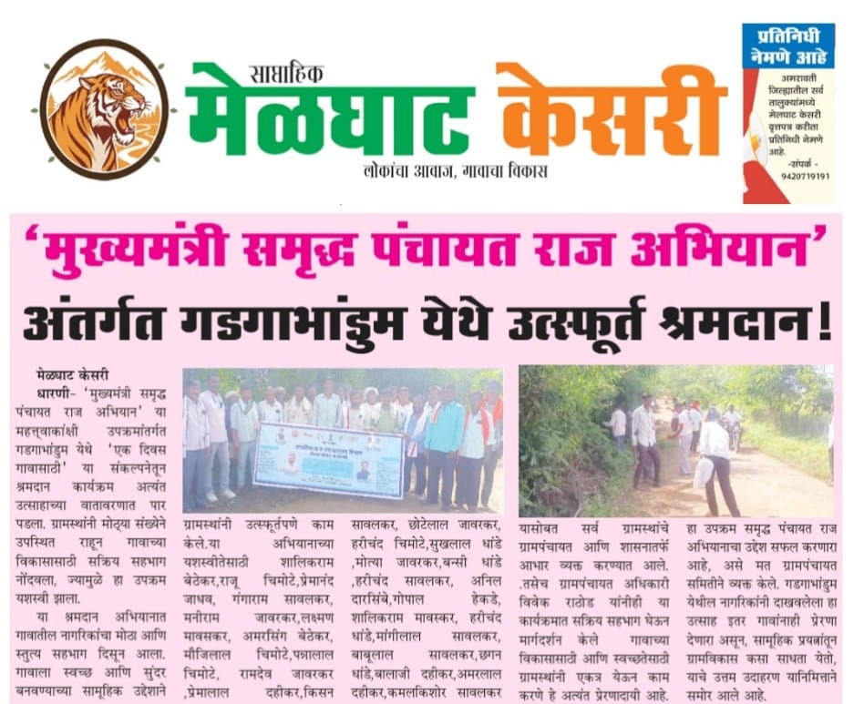 - ग्रामपंचायत गडगाभांडूम ने स्वच्छ भारत मिशन अर्तागत प्रमाणपत्र मिळालेले आहे